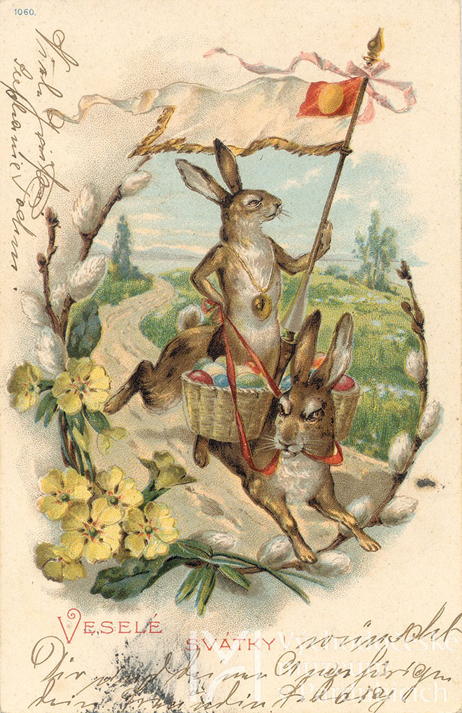 Nejvýznamnější křesťanský svátek si tradičně spojujeme s kraslicemi, pomlázkou a návštěvou kostela. Už od konce 19. století se další oblíbenou tradicí stalo posílat pohlednice s velikonoční tématikou. Zpočátku šlo o velmi zdobná přání s obvyklými motivy, ale velmi brzy získaly na oblíbenosti humoristické pohlednice s králíky v kabátech, pobíhajícími kraslicemi nebo závody ve velikonočním běhu a koledování. Pojďte s námi poodhalit bohatou filokartistickou kolekci a zjistit, jak si naši předci připomínali různé oblíbené svátky.